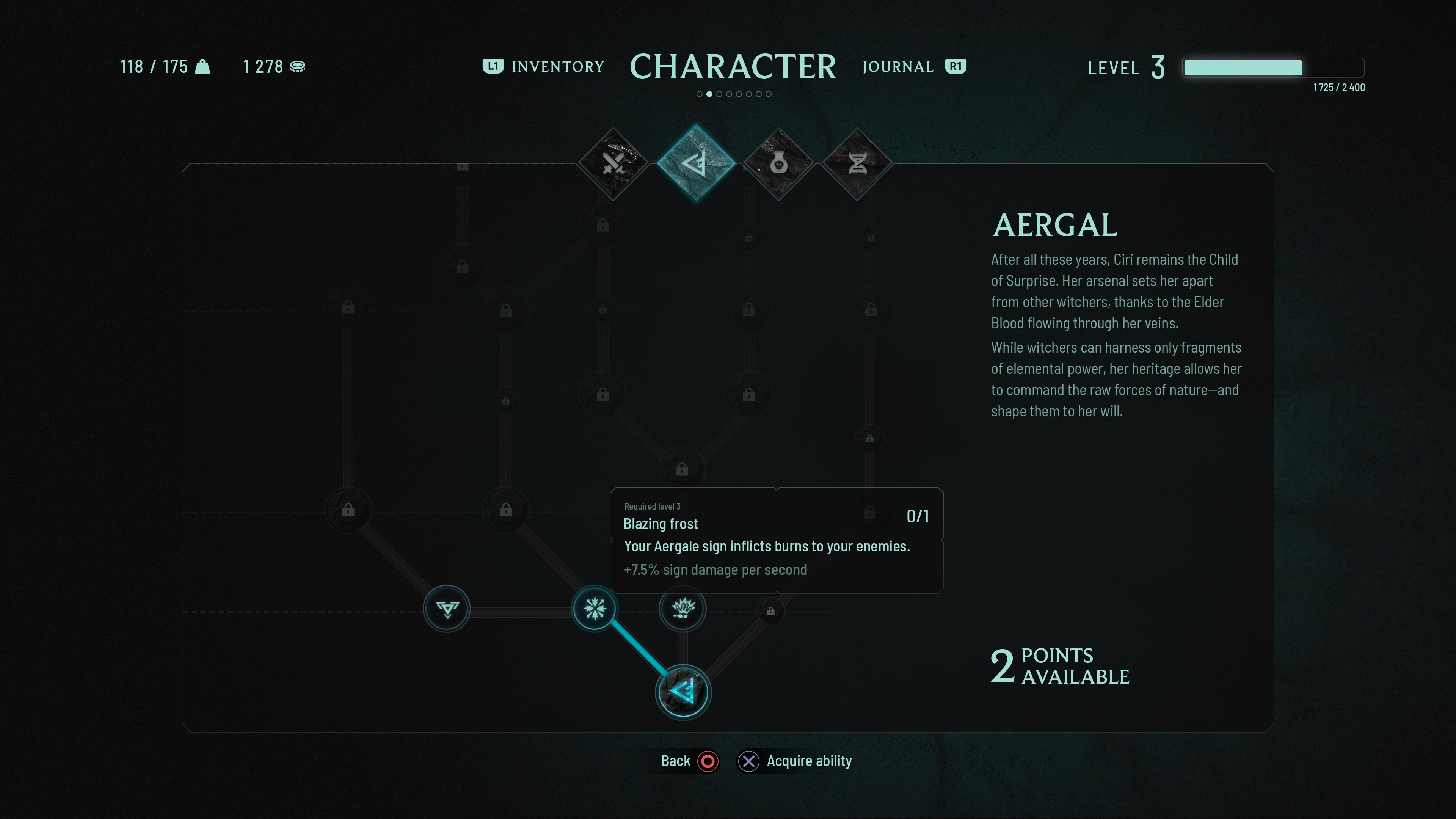Ciri’s version of the signs is built around a new one: Aergal. In the trailer, she’s seen combining water and lightning — a cool moment that hints at exciting gameplay potential. I would explore a system where certain high-level talents or abilities remain obscured until discovered, reinforcing the sense of mystery and encouraging exploration within the UI itself.